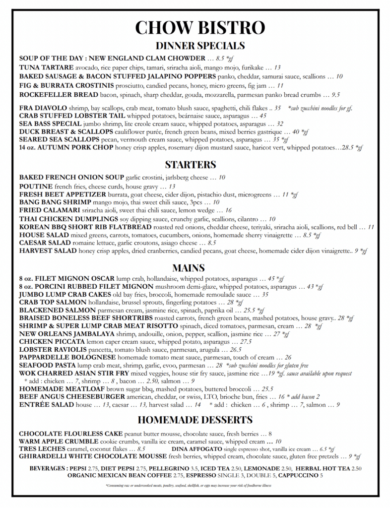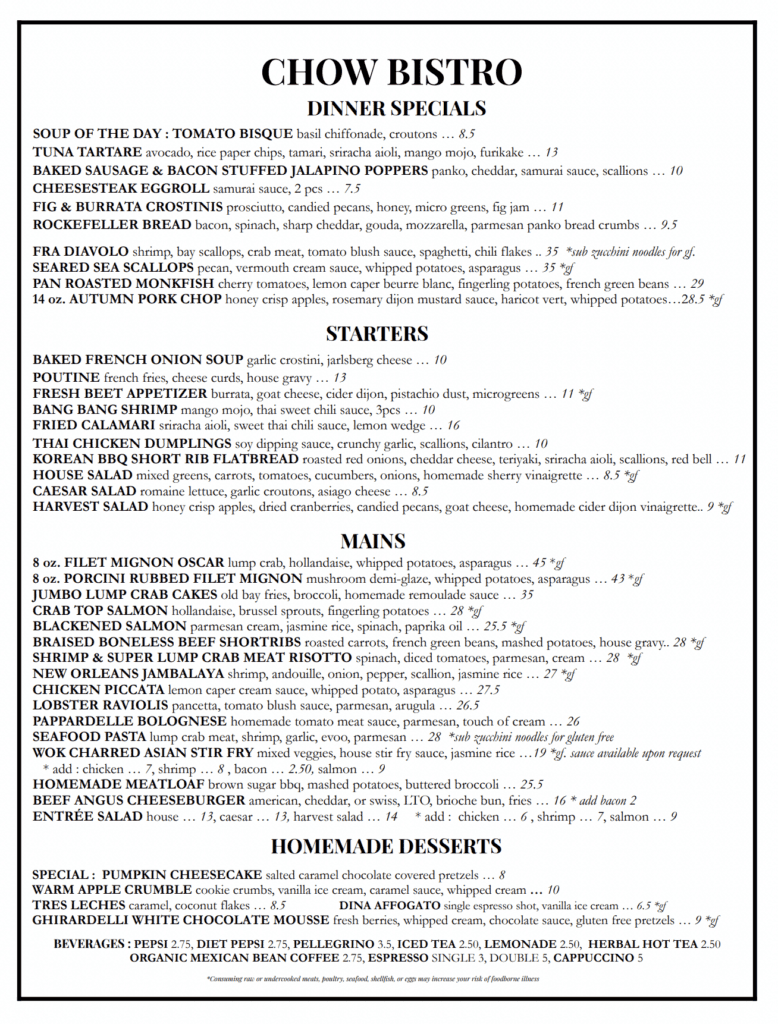 CHOW BISTRO BUSINESS HOURS :