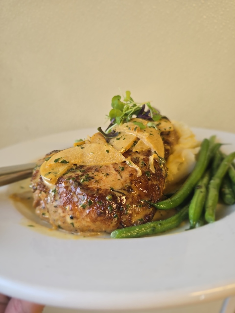 cherry tomatoes capers cream sauce, whipped potatoes, french green beans *gf