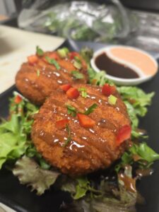 panko bread crumbs, onion, fresh herbs, duo dipping sauce, scallions